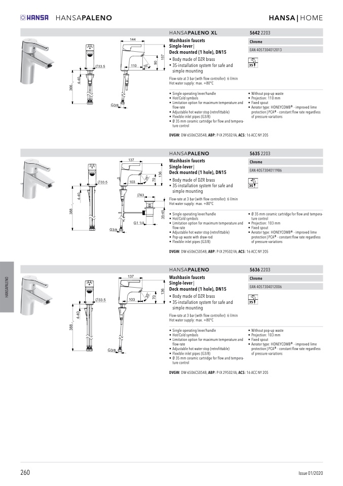 • Ø 35 mm ceramic cartridge for flow and tempera-