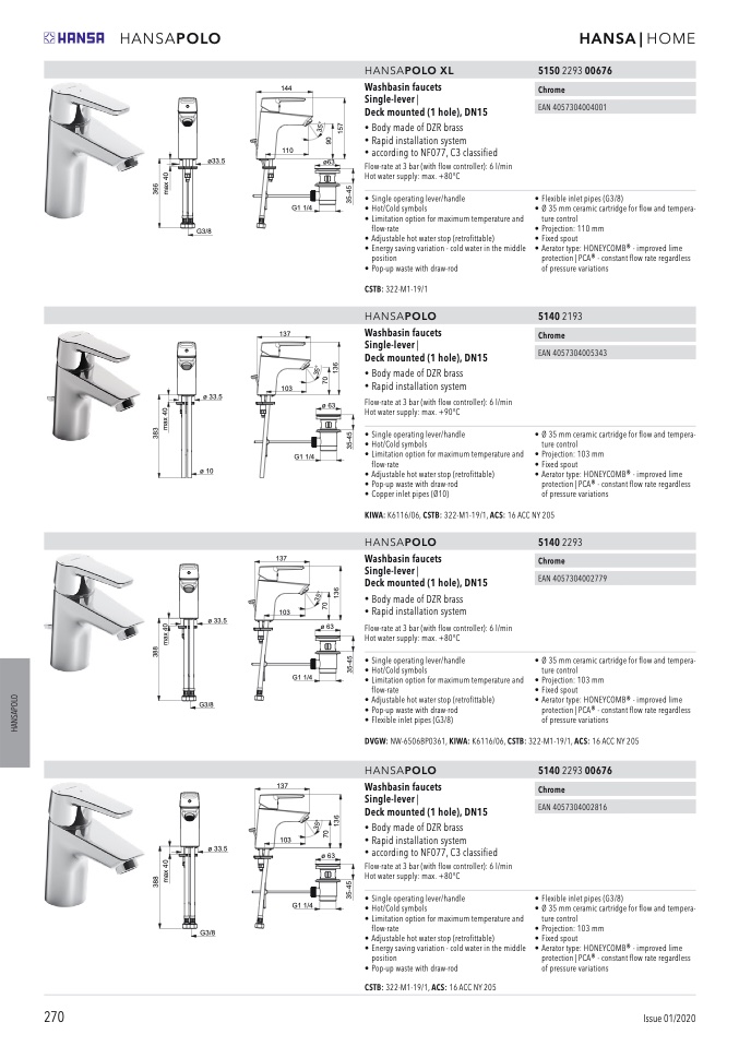 Deck mounted (1 hole), DN15