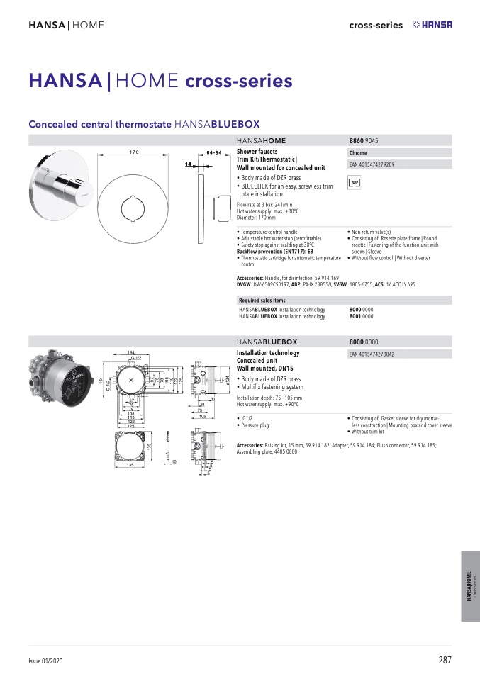 Concealed central thermostate HANSABLUEBOX