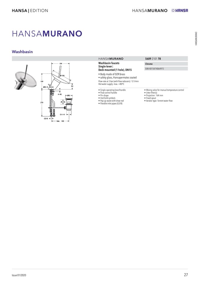 Flow-rate at 3 bar (with flow reducers): 12 l/min