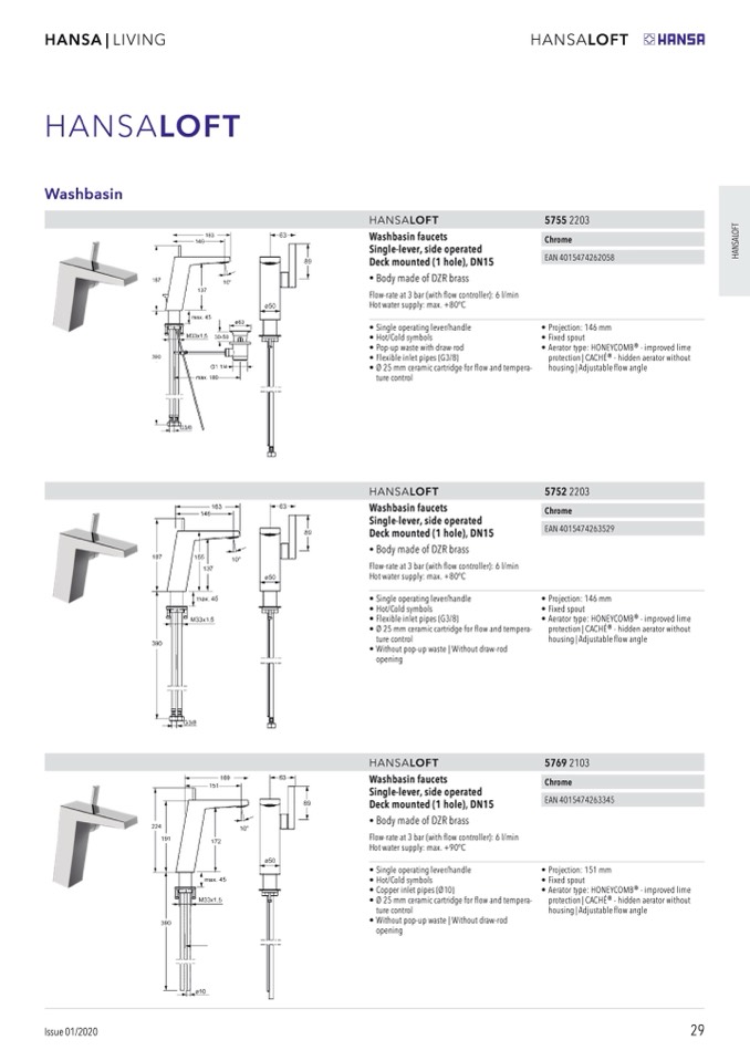 • Ø 25 mm ceramic cartridge for flow and tempera-