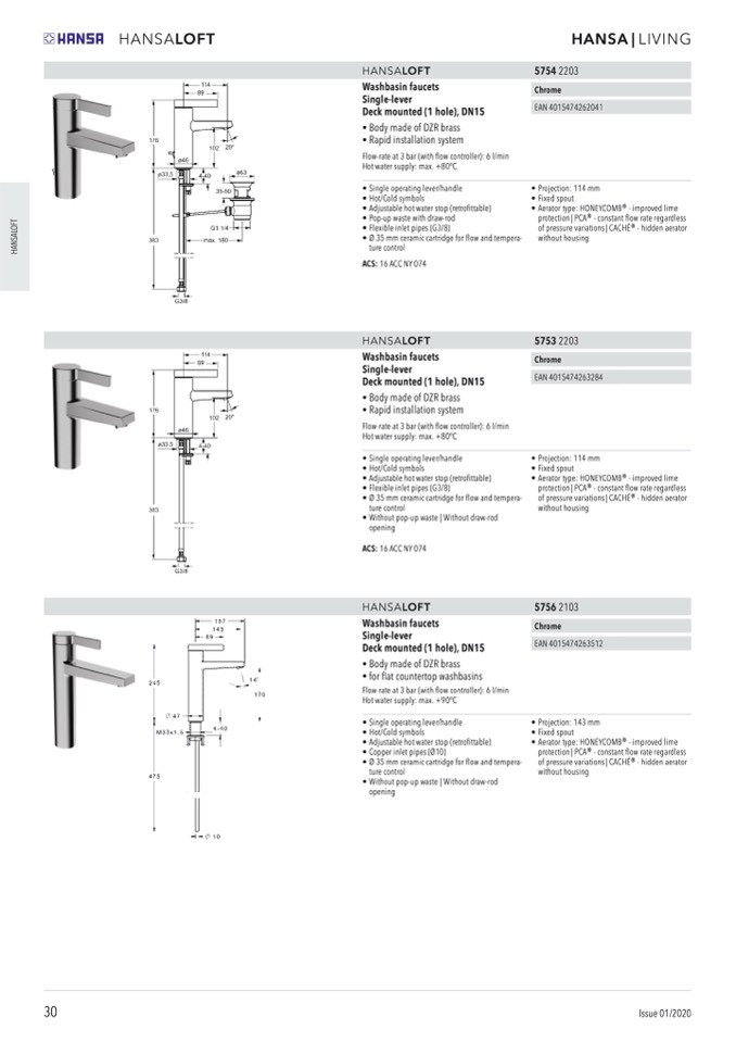 • Ø 35 mm ceramic cartridge for flow and tempera-
