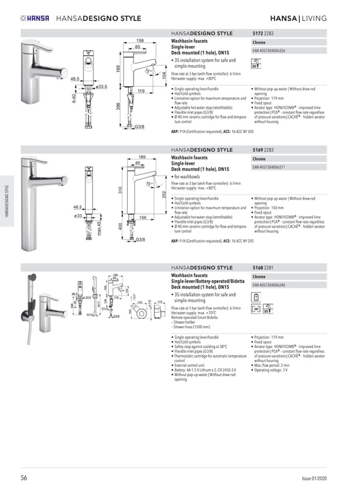 • Ø 40 mm ceramic cartridge for flow and tempera-