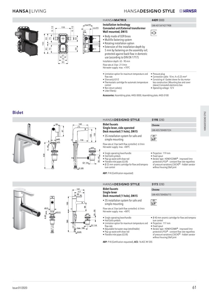 • Ø 40 mm ceramic cartridge for flow and tempera-
