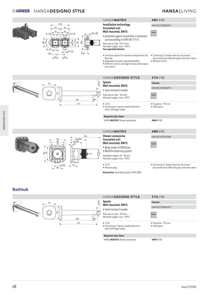 • Ø 40 mm ceramic cartridge for flow and tempera-