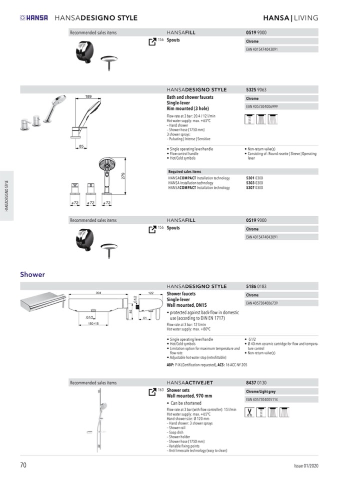 • Ø 40 mm ceramic cartridge for flow and tempera-