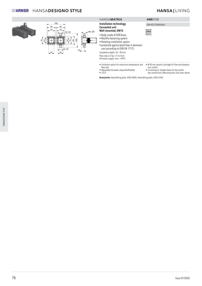 • Ø 40 mm ceramic cartridge for flow and tempera-
