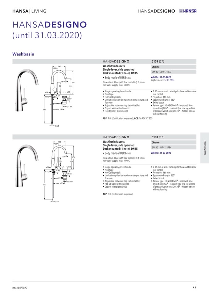 • Ø 35 mm ceramic cartridge for flow and tempera-