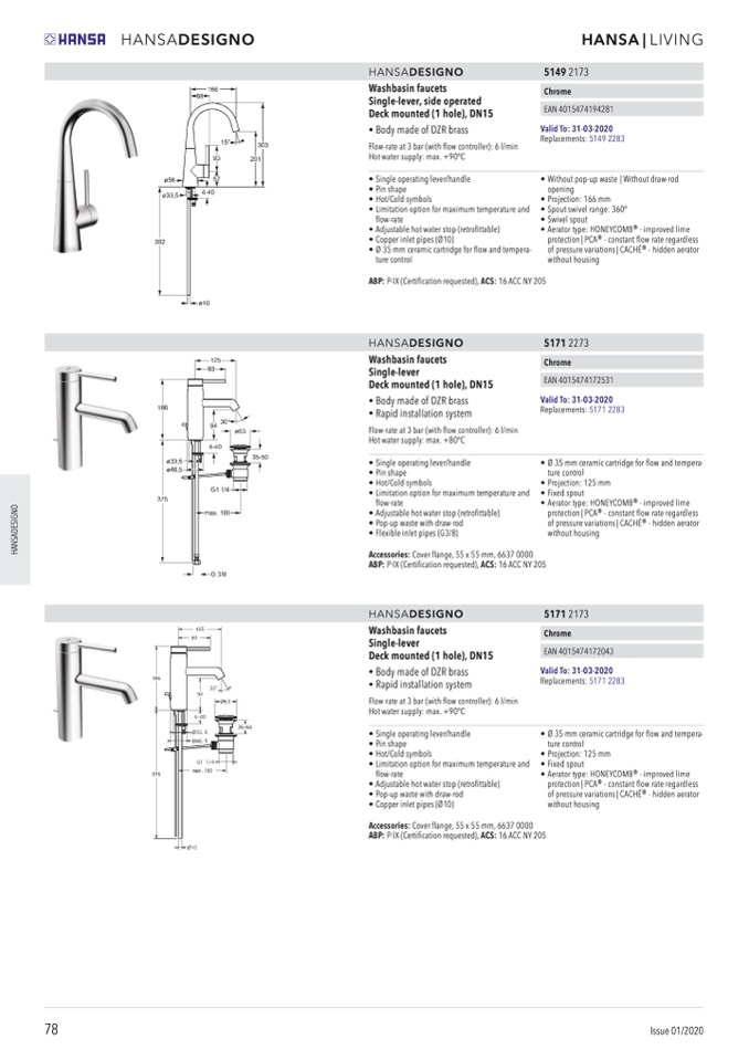 • Ø 35 mm ceramic cartridge for flow and tempera-