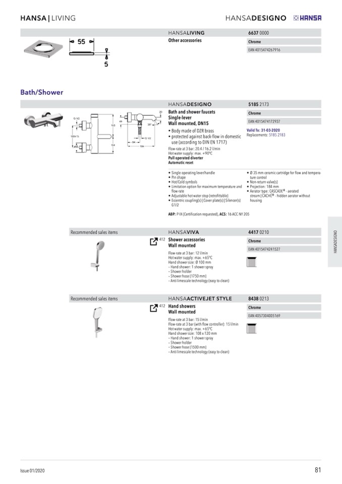 • Ø 35 mm ceramic cartridge for flow and tempera-