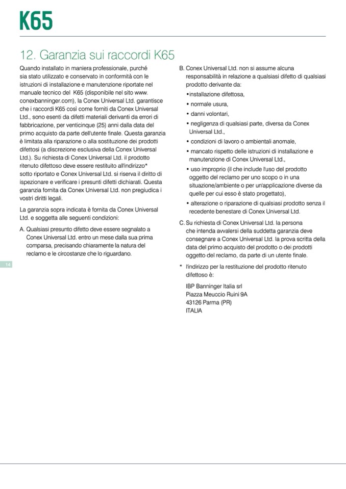 conexbanninger.com), la Conex Universal Ltd. garantisce