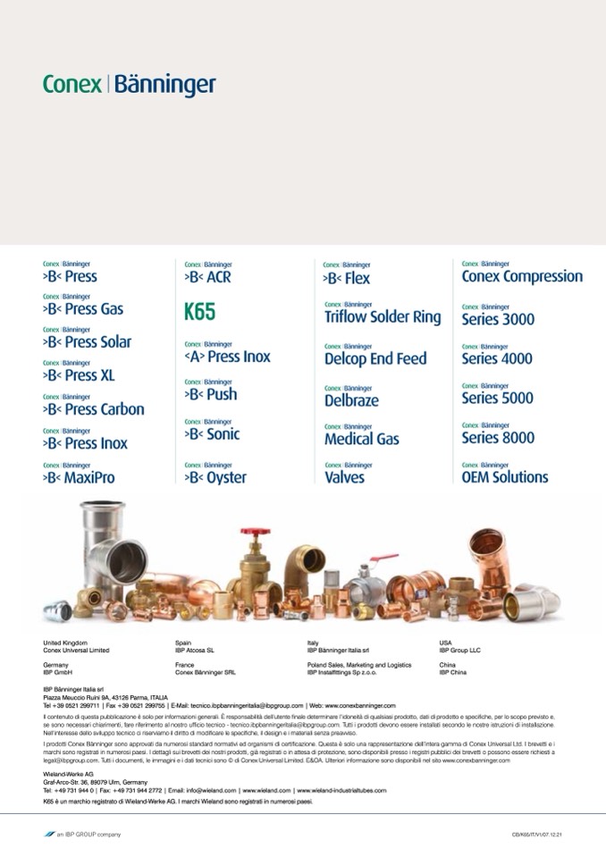 legal@ibpgroup.com. Tutti i documenti, le immagini e i dati tecnici sono © di Conex Universal Limited. E&OA. Ulteriori informazione sono disponibili nel sito www.conexbanninger.com