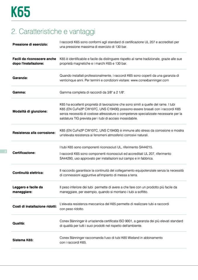 Quando installati professionalmente, i raccordi K65 sono coperti da una garanzia di