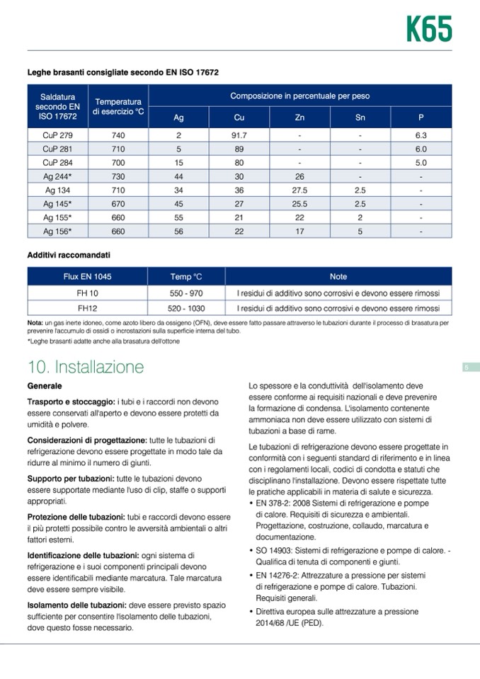 Nota: un gas inerte idoneo, come azoto libero da ossigeno (OFN), deve essere fatto passare attraverso le tubazioni durante il processo di brasatura per