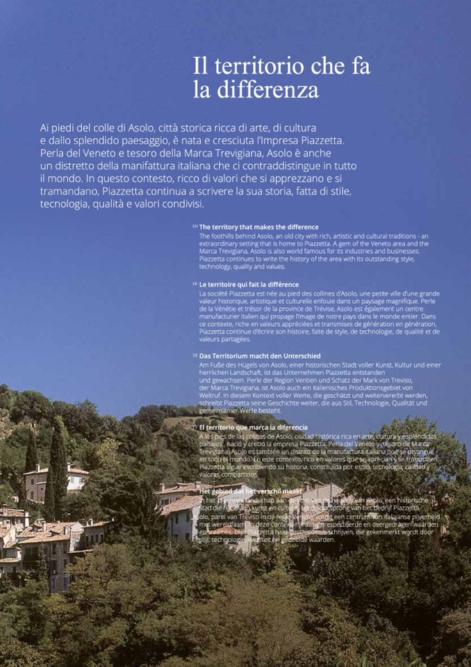 La société Piazzetta est née au pied des collines d’Asolo, une petite ville d’une grande