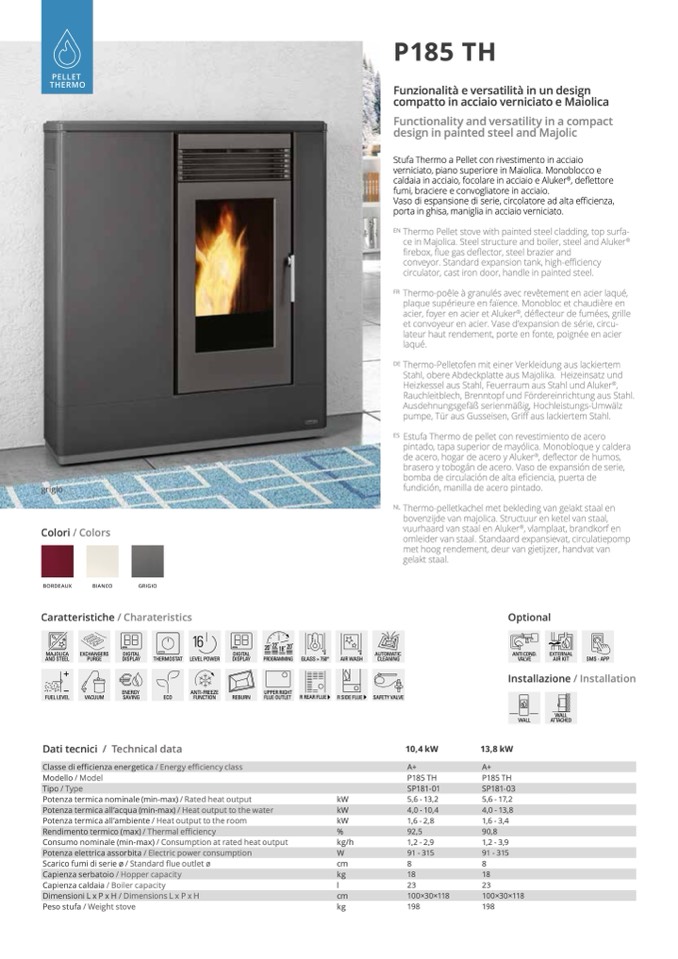 Thermo-poêleàgranulésavecrevêtementenacierlaqué,