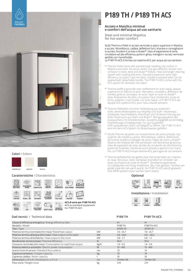 La P189 TH ACS è fornita con sistema ACS, per acqua ad uso sanitario.