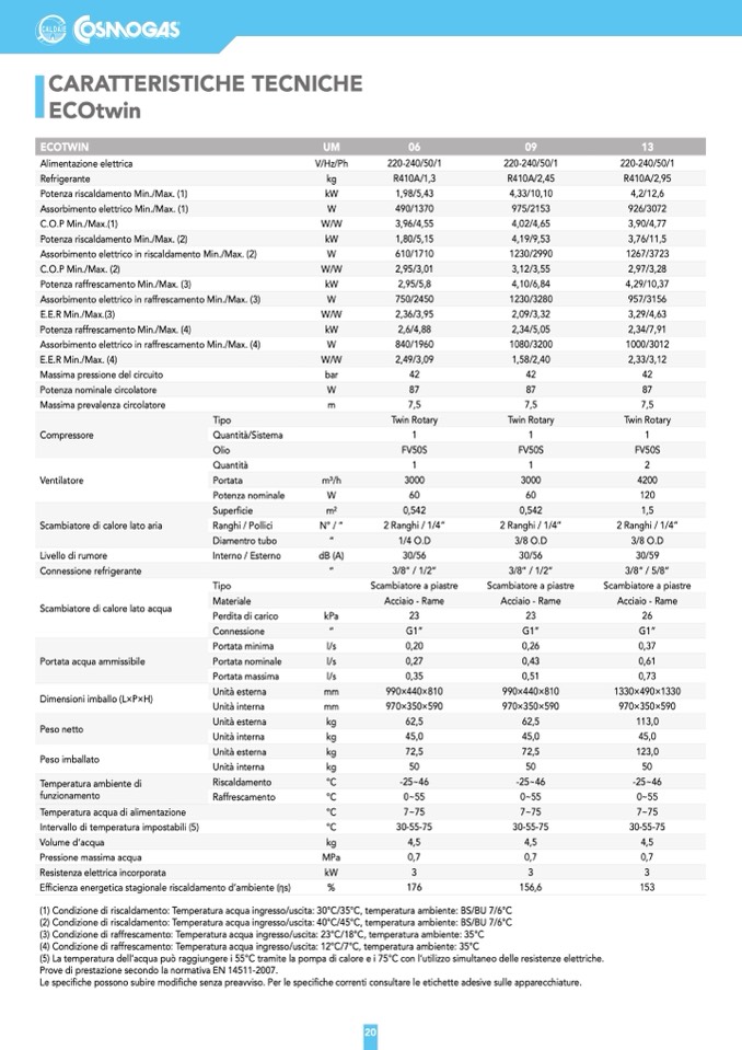 (5) La temperatura dell’acqua può raggiungere i 55°C tramite la pompa di calore e i 75°C con l’utilizzo simultaneo delle resistenze elettriche.