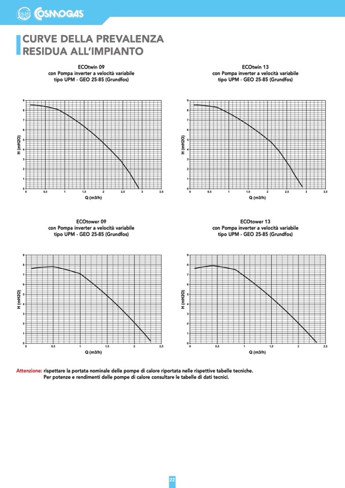 Attenzione: rispettare la portata nominale delle pompe di calore riportata nelle rispettive tabelle tecniche.
