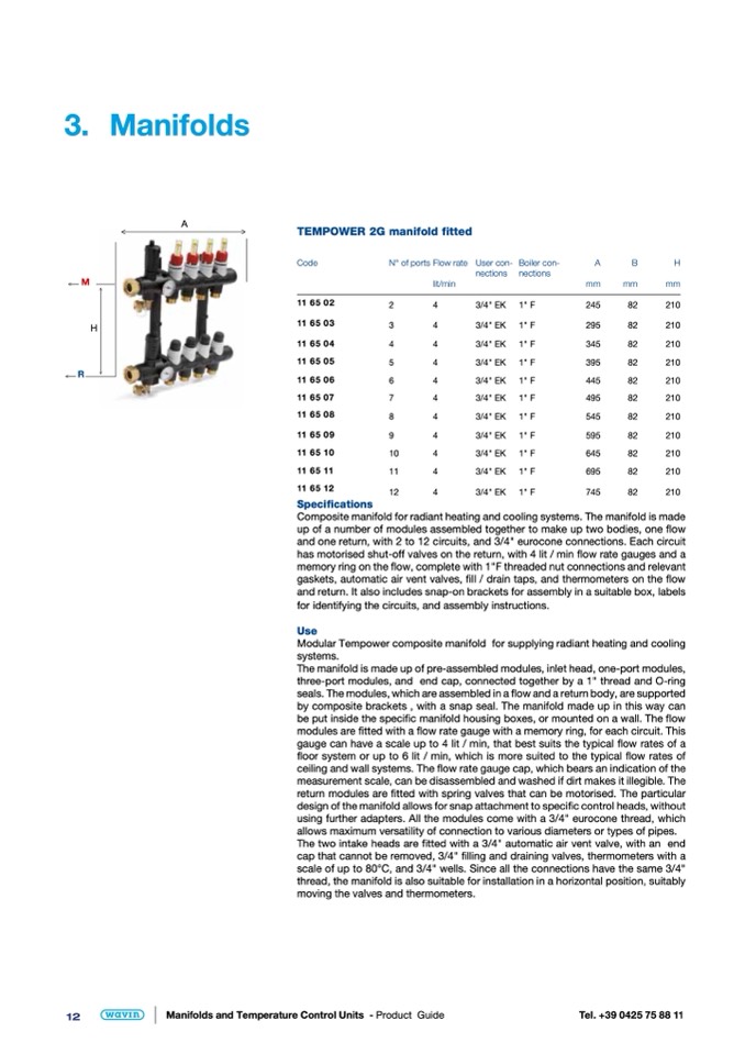 and one return, with 2 to 12 circuits, and 3/4" eurocone connections. Each circuit