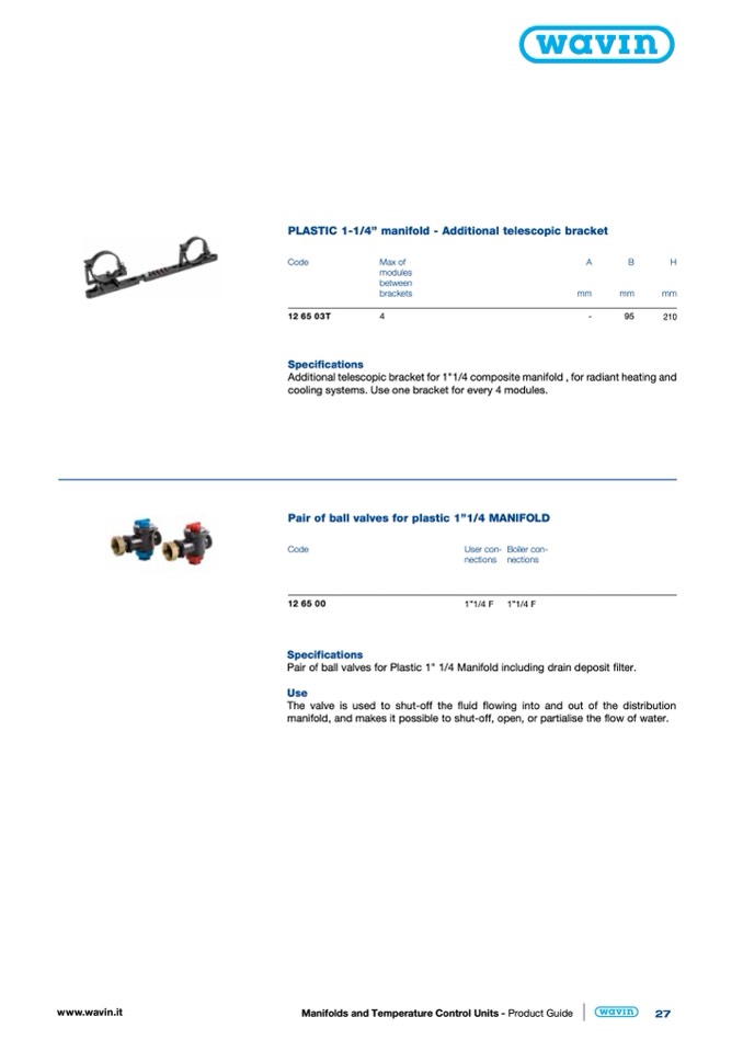 Pair of ball valves for plastic 1”1/4 MANIFOLD