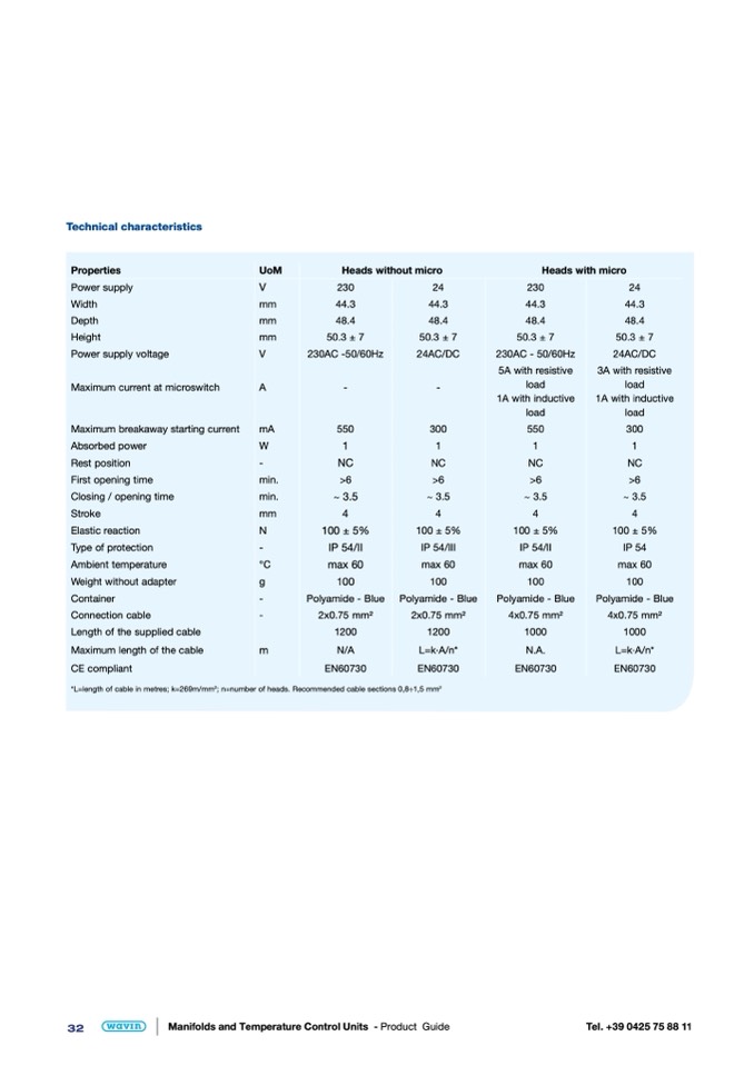 ; n=number of heads. Recommended cable sections 0,8÷1,5 mm