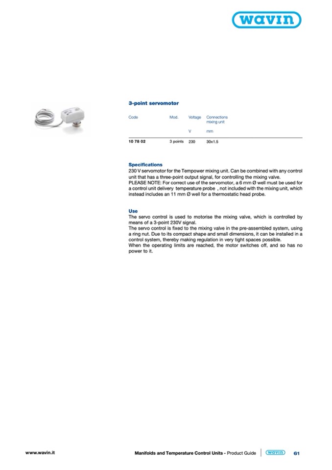 230 V servomotor for the Tempower mixing unit. Can be combined with any control