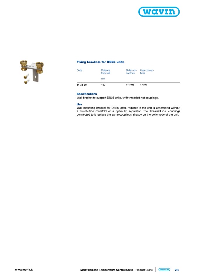 Wall mounting bracket for DN25 units, required if the unit is assembled without