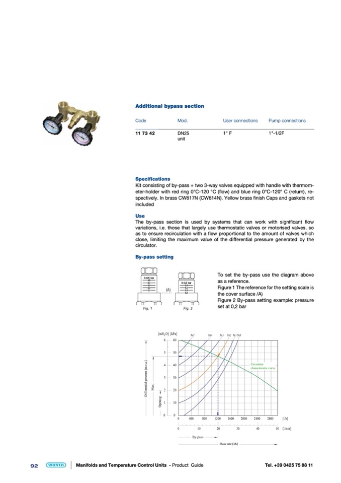 Kit consisting of by-pass + two 3-way valves equipped with handle with thermom-