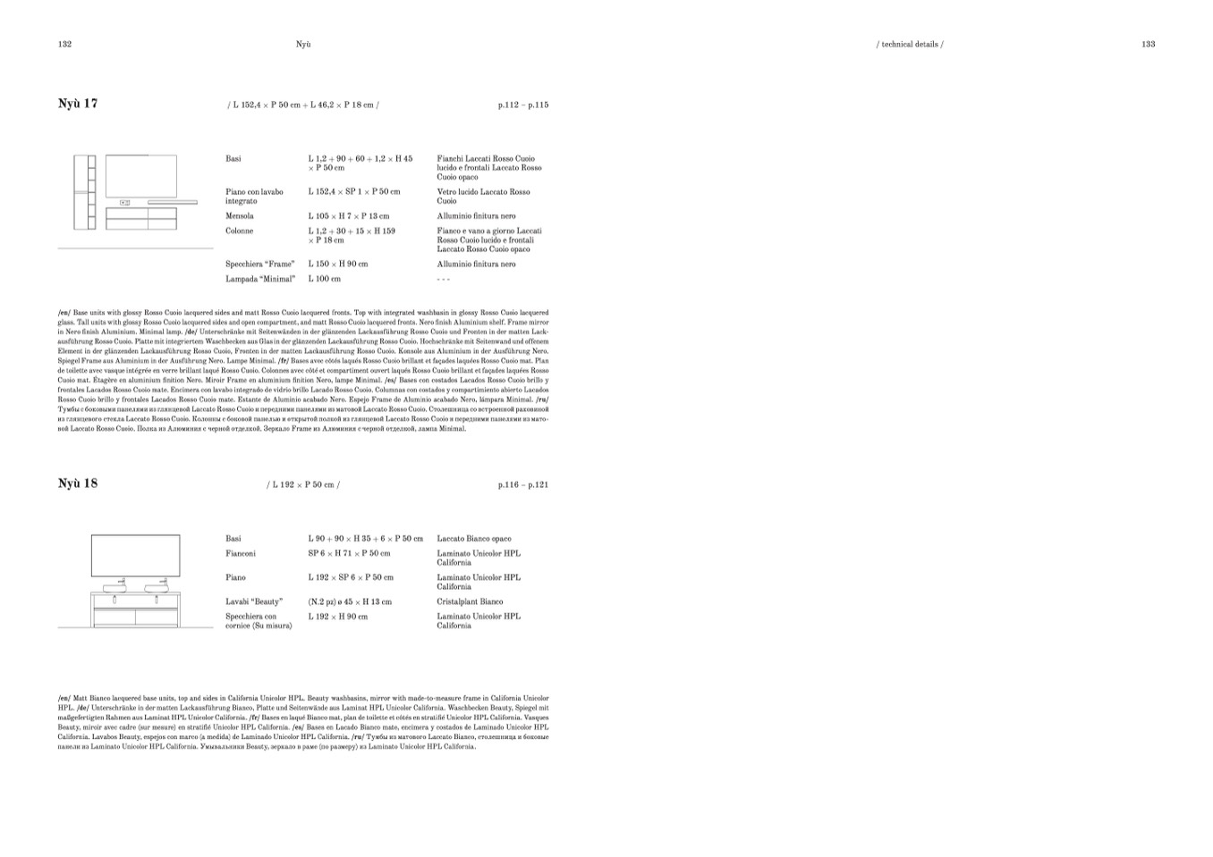 !"#!$Matt Bianco lacquered base units, top and sides in California Unicolor HPL. Beauty washbasins, mirror with made-to-measure frame in California Unicolor