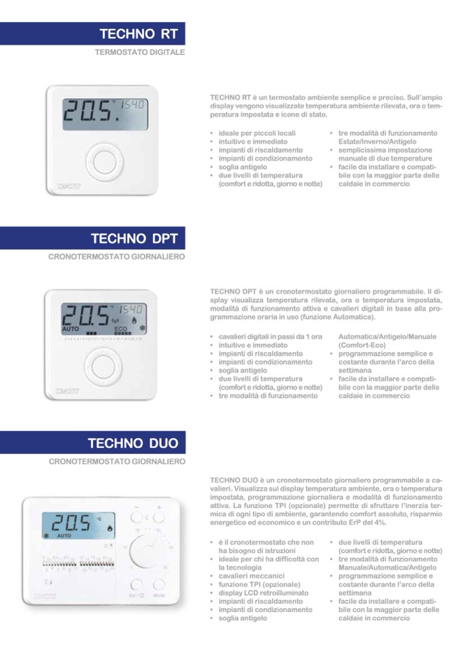 TECHNO DPT è un cronotermostato giornaliero programmabile. Il di-