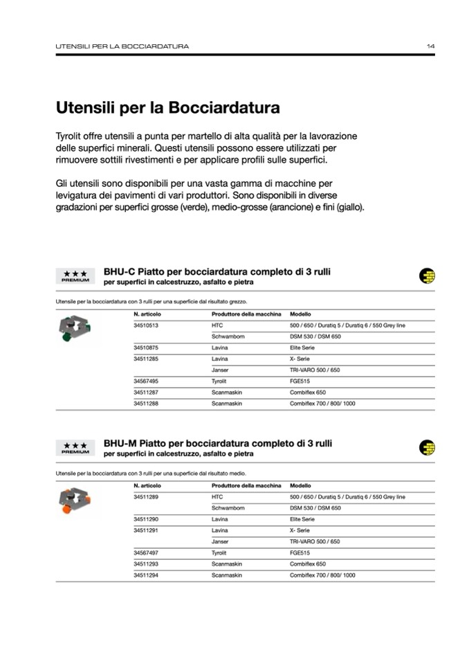 Utensile per la bocciardatura con 3 rulli per una super