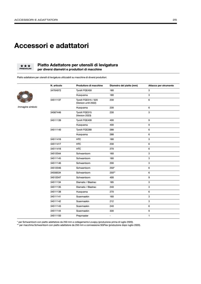 ** per macchina Schwamborn con piatto adattatore da 250 mm e connessione SGFlex (produzione dopo luglio 2020).