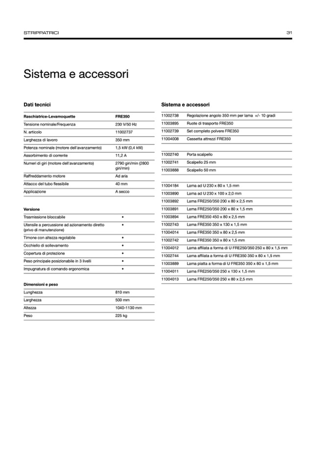 Regolazione angolo 350 mm per lama +/- 10 gradi