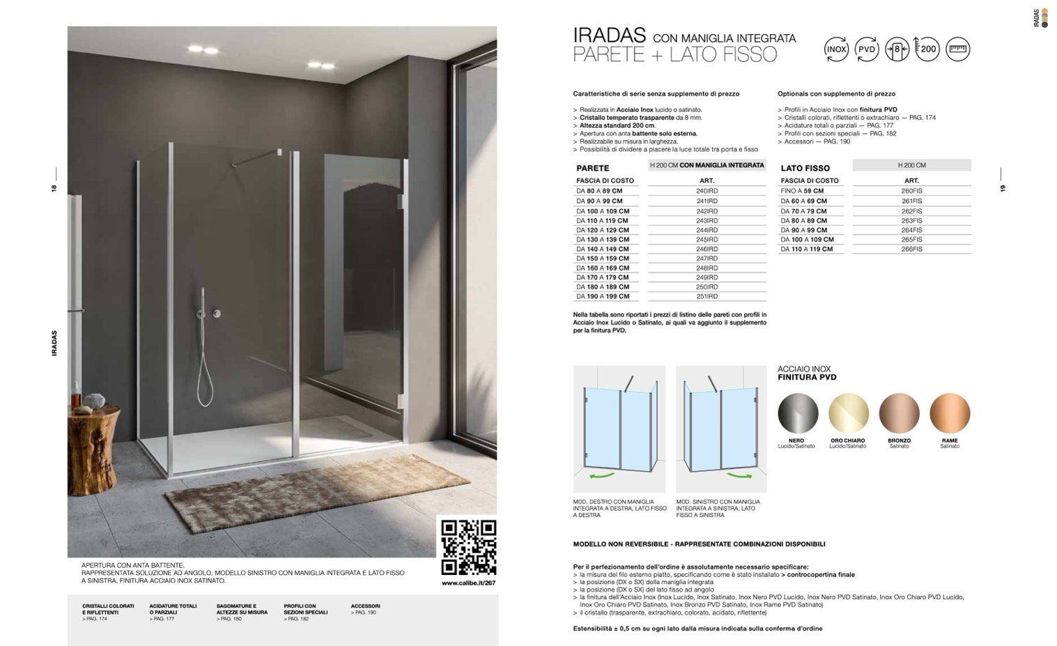 > la finitura dell’Acciaio Inox (Inox Lucido, Inox Satinato, Inox Nero PVD Lucido, Inox Nero PVD Satinato, Inox Oro Chiaro PVD Lucido,