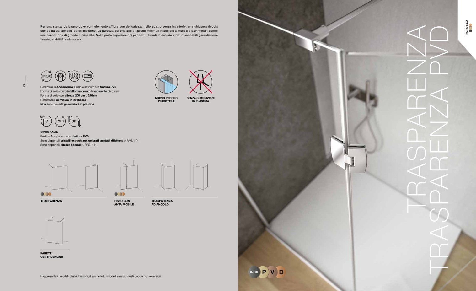 Rappresentati i modelli destri. Disponibili anche tutti i modelli sinistri. Pareti doccia non reversibili
