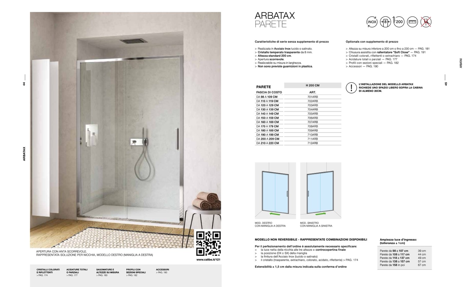 > Altezza su misura inferiore a 200 cm o fino a 230 cm — PAG. 181