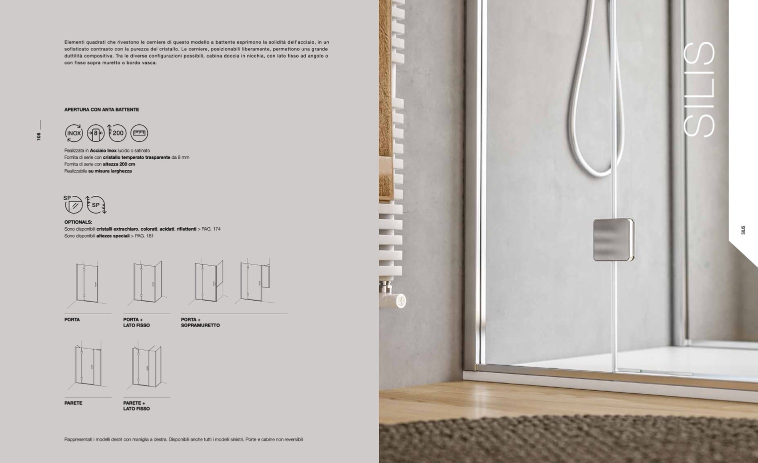 Rappresentati i modelli destri con maniglia a destra. Disponibili anche tutti i modelli sinistri. Porte e cabine non reversibili