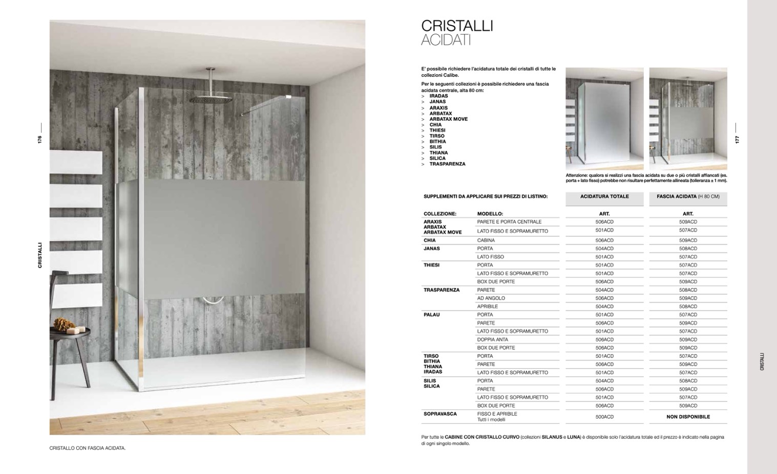 Per tutte le CABINE CON CRISTALLO CURVO (collezioni SILANUS e LUNA) è disponibile solo l'acidatura totale ed il prezzo è indicato nella pagina