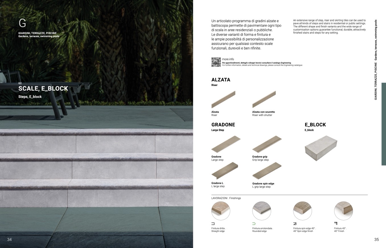 An extensive range of step, riser and skirting tiles can be used to
