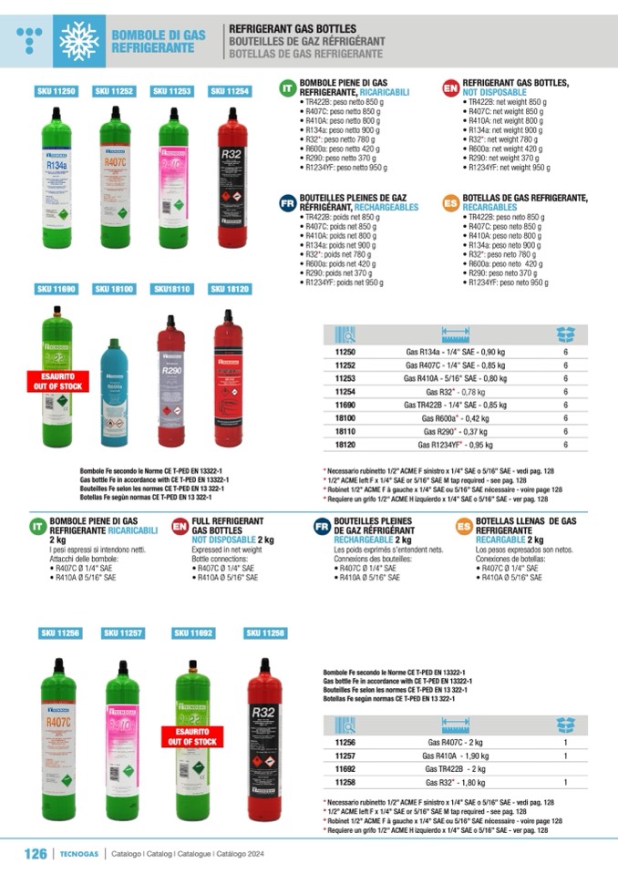 • R134a: peso neto 900 g