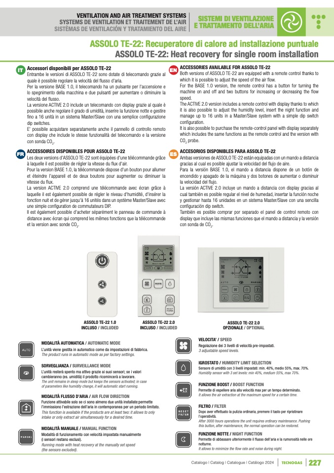 Entrambe le versioni di ASSOLO TE-22 sono dotate di telecomando grazie a