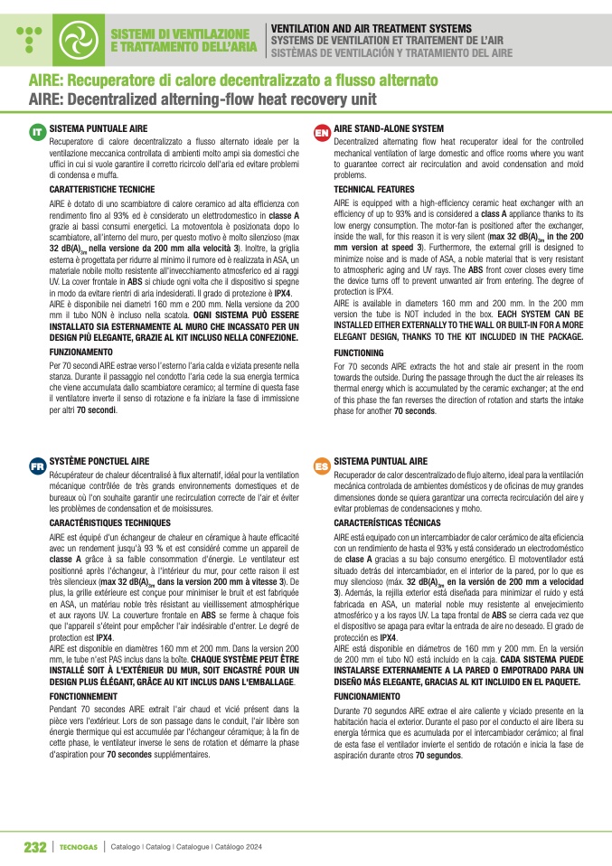 AIRE è dotato di uno scambiatore di calore ceramico ad alta efficienza con