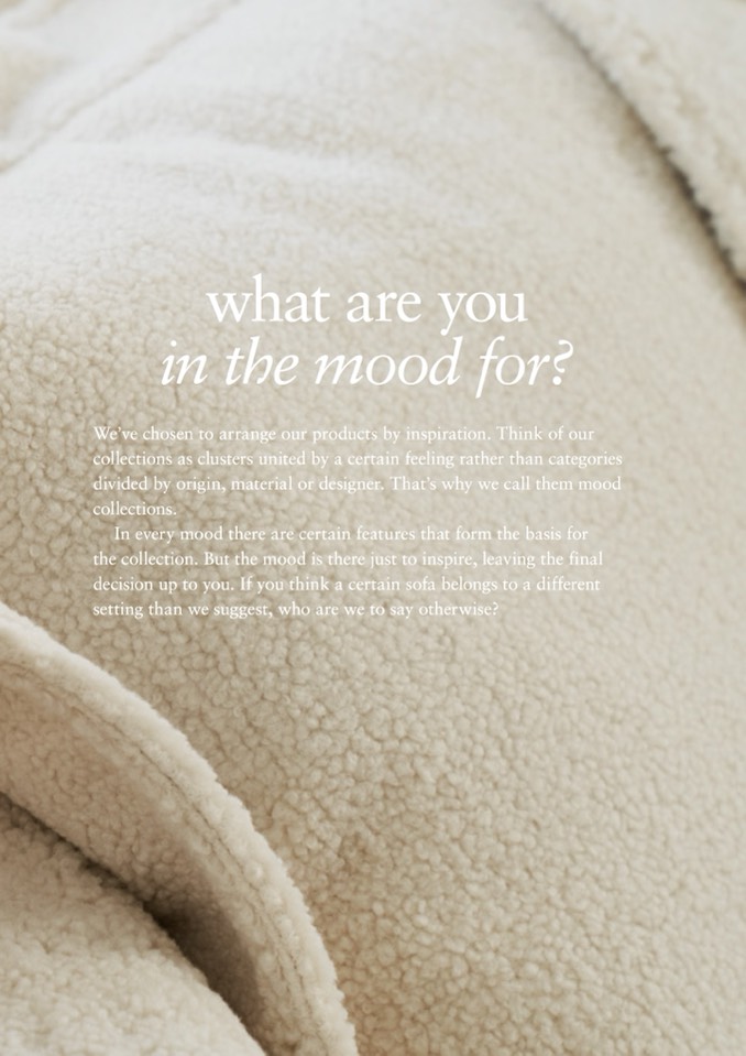 divided by origin, material or designer. That’s why we call them mood