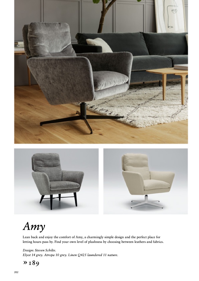Lean back and enjoy the comfort of Amy, a charmingly simple design and the perfect place for