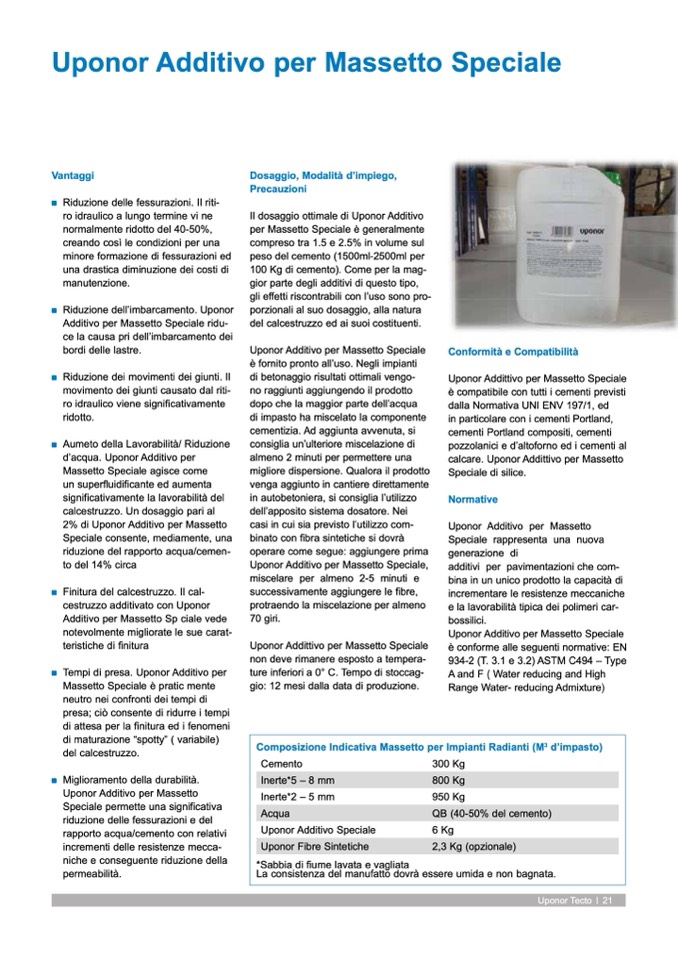 calcare. Uponor Addittivo per Massetto