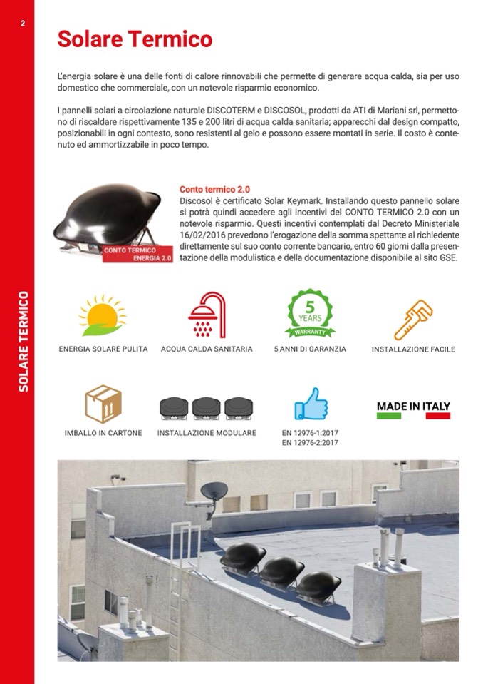 I pannelli solari a circolazione naturale DISCOTERM e DISCOSOL, prodotti da ATI di Mariani srl, permetto-