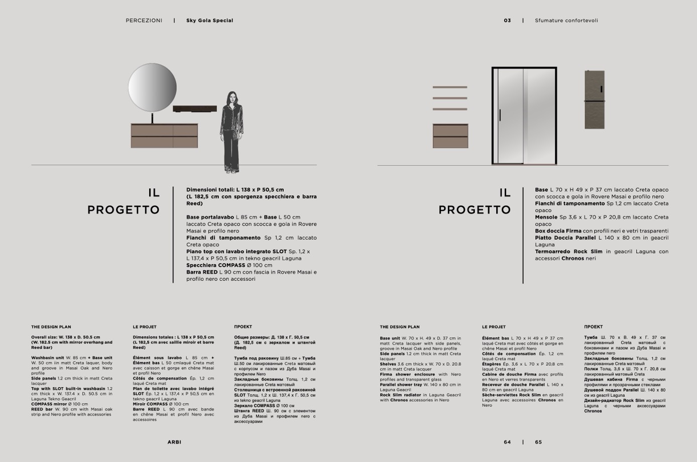 Side panels 1.2 cm thick in matt Creta