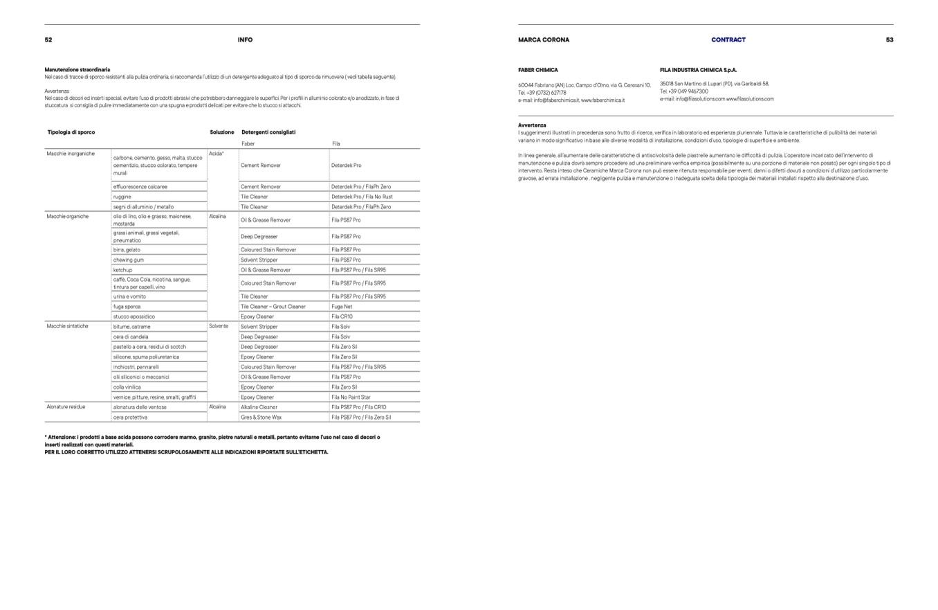 intervento. Resta inteso che Ceramiche Marca Corona non può essere ritenuta responsabile per eventi, danni o difetti dovuti a condizioni d’utilizzo particolarmente