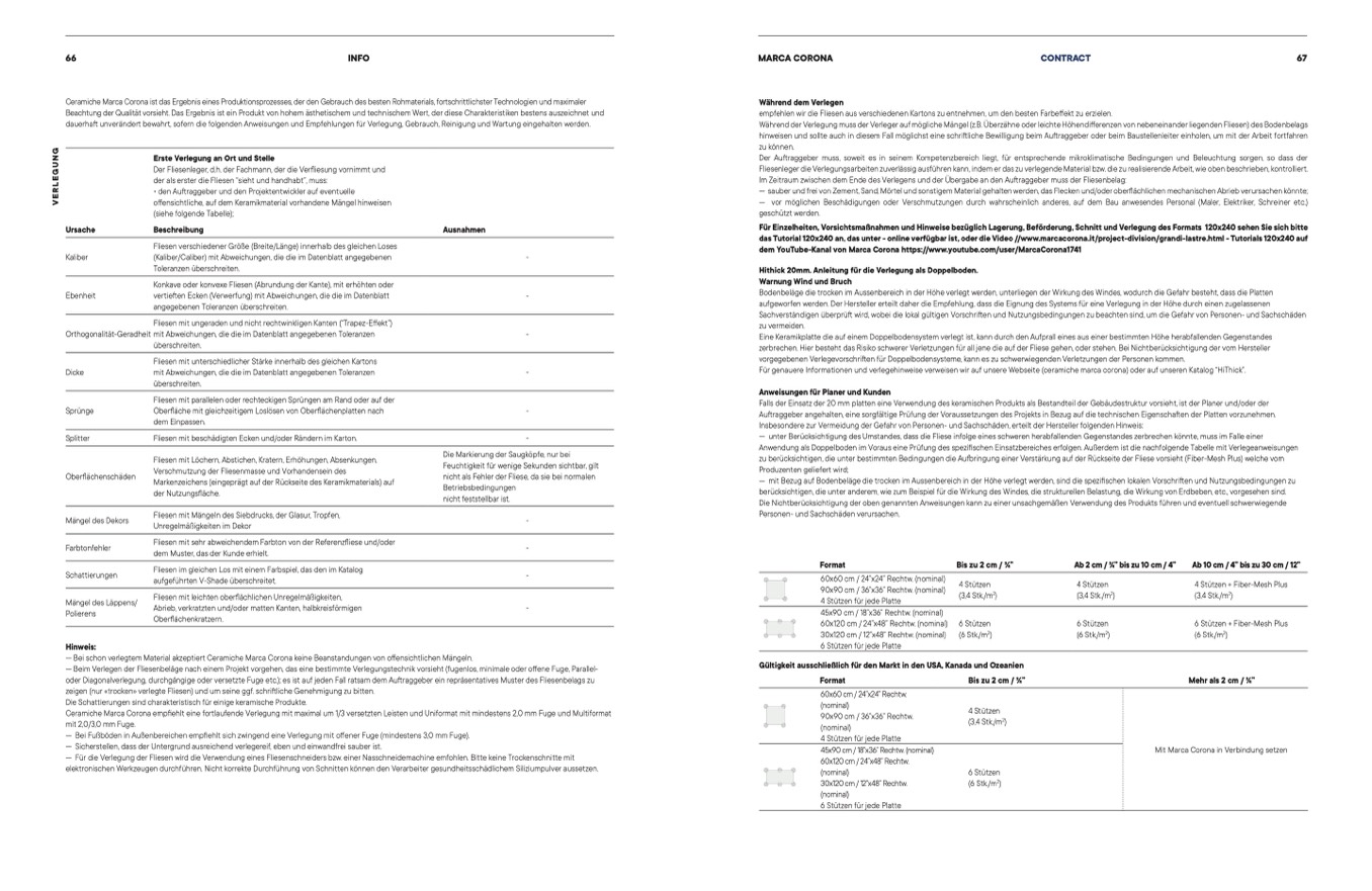 Für genauere Informationen und verlegehinweise verweisen wir auf unsere Webseite (ceramiche marca corona) oder auf unseren Katalog “HiThick”.